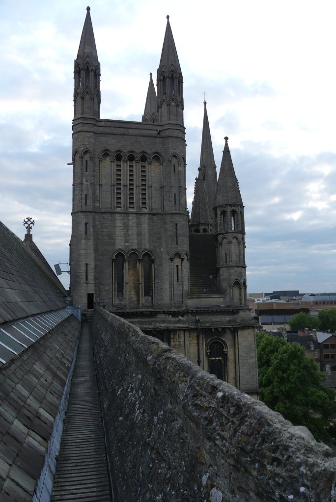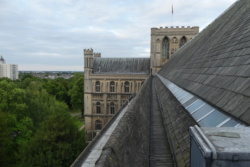 As the evening went on more time was given to change ringing. A half course of Cambridge Royal preceded excellent touches of Erin Caters. The weather was warm as the sun became lower in the sky and several of us ventured onto the nave roof walkway to admire the view and hear the bells immediately beneath the tower.