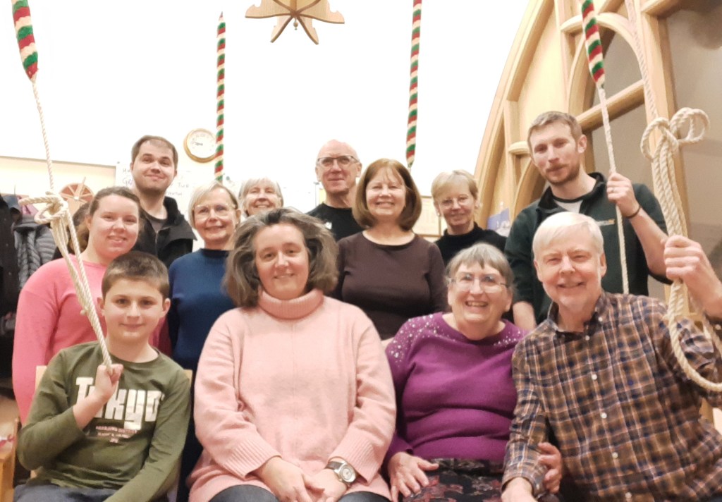 The photos show the Thursday night band as we presented Mirjam with a momento, a jigsaw puzzle depicting the church and ringers.
