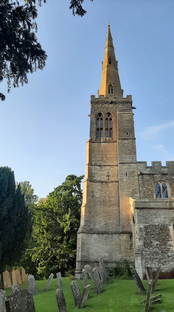 Thursday 10th August 2023 was a lovely warm summer’s evening and eight of us were able to make the visit along the A14 west of Huntingdon. The church spire could be seen which helped direct us to the village and along Church Road to St Leonard’s.