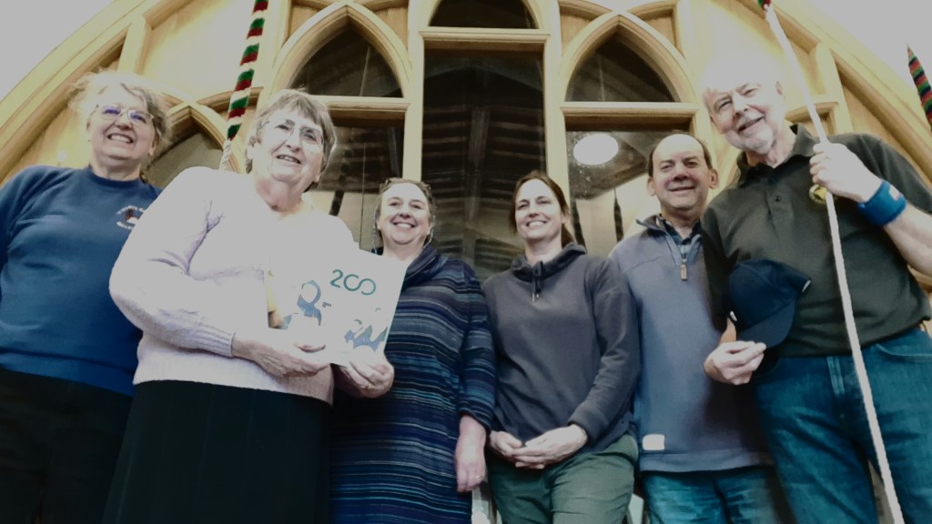 Two of the ringers had not rung a quarter peal at Great Gransden before and this presented a good opportunity for them. We rang 1296 changes of Cambridge Surprise Minor, which took 44 minutes. Another important footnote was that it was Sheila George’s 950th quarter peal and her 266th on the bells. Well done Sheila!