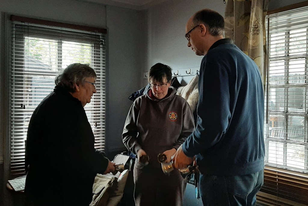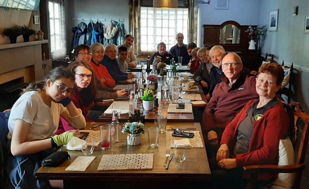 A relaxing lunch was taken at the Bedford Arms in Oakley where we had permission to ring handbells. There were seven handbell ringers in the group and all rang – Impressive! Performance touch – PB6.