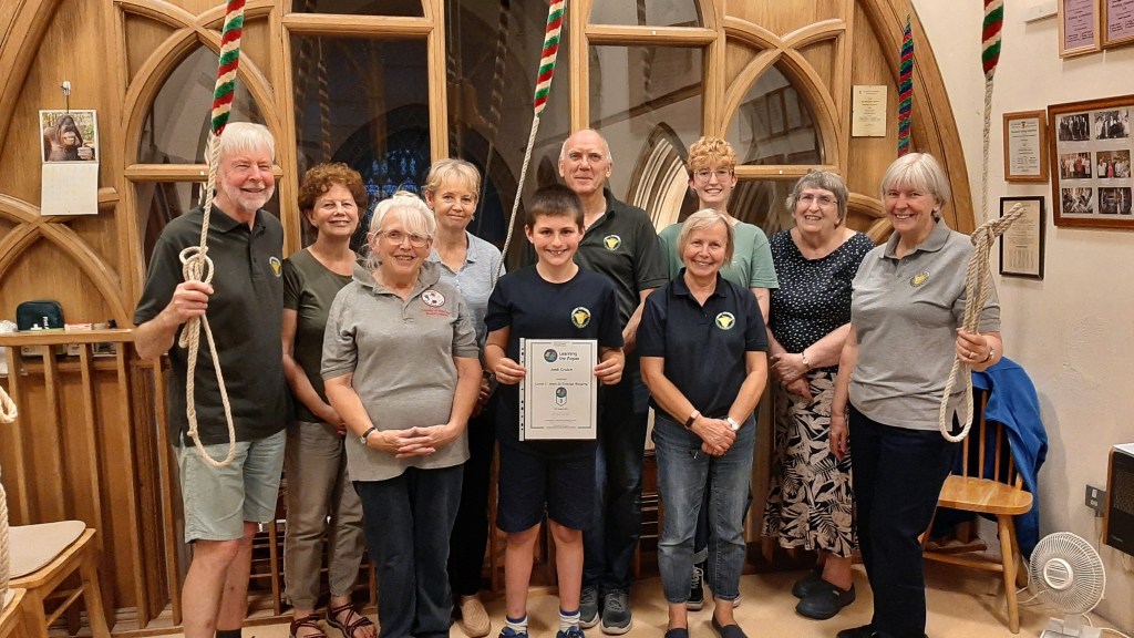 We have already reported that Em started to learn to ring, and after seven lessons has achieved her Level 1 in the same scheme. We will present her certificate on the 29th of August.