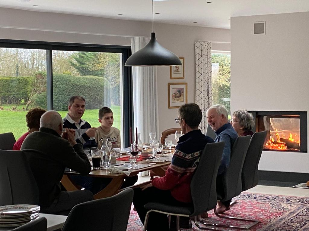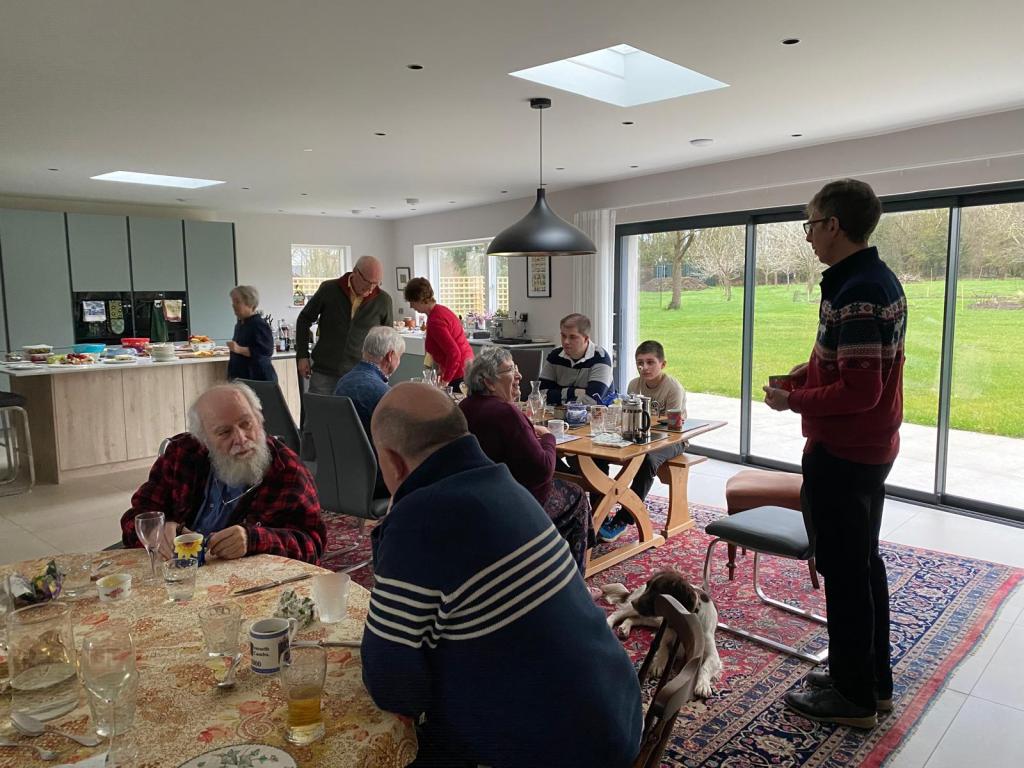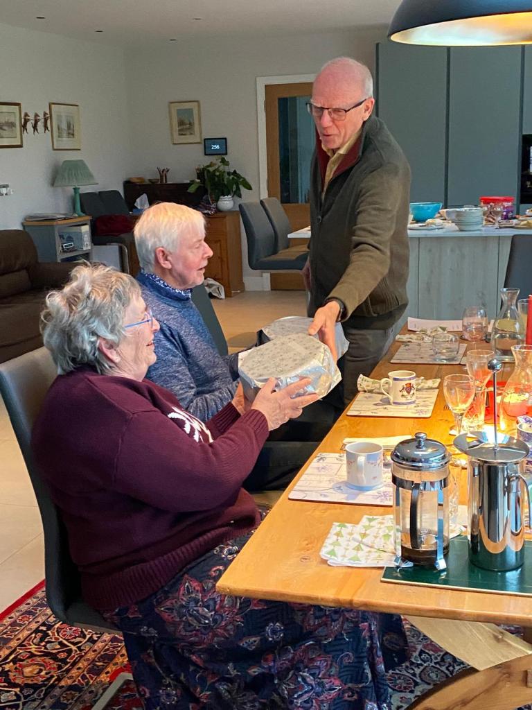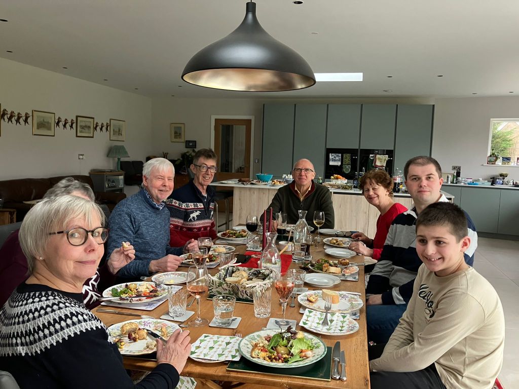 We decided on 4th January 2025 at 12.30pm and we all brought a variety of delicious foods including salads, meats, quiches, pavlovas and chocolate moousse. Soft drinks, wine and beer was also available. We enjoyed the spacious comfort of Sue and Ant’s home, especially the log burner adding warm atmosphere to a most convivial occasion.