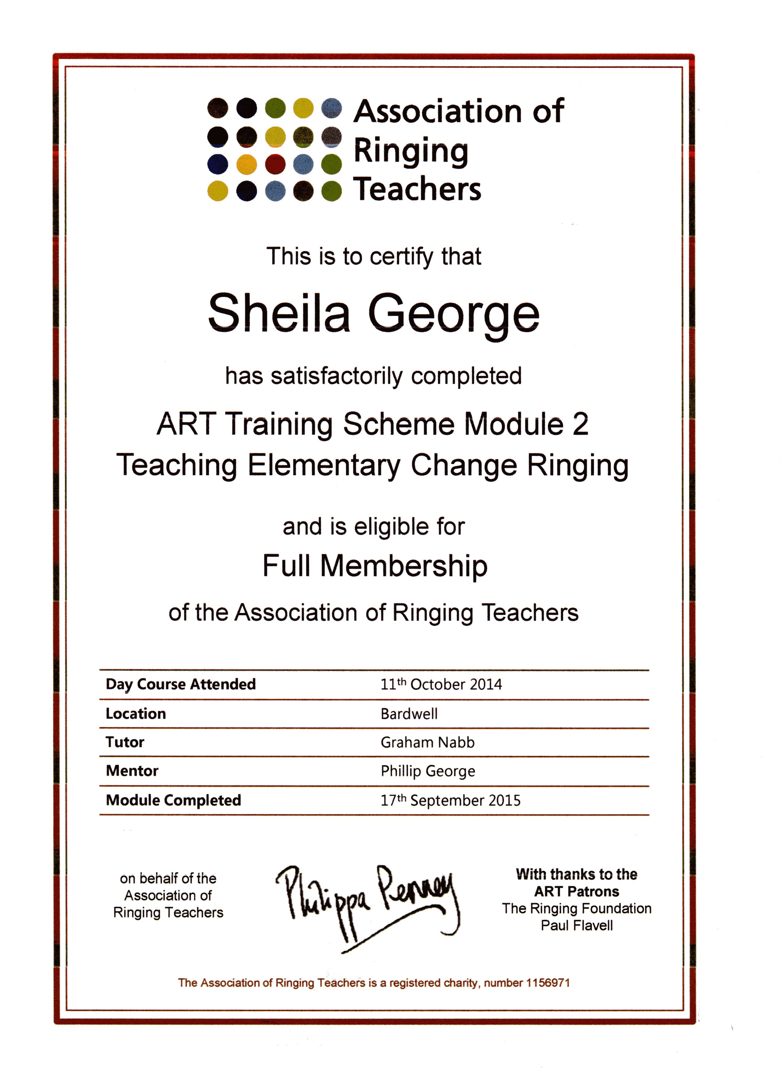 Sheila is an acredited Learning the Ropes bell ringing trainer.
