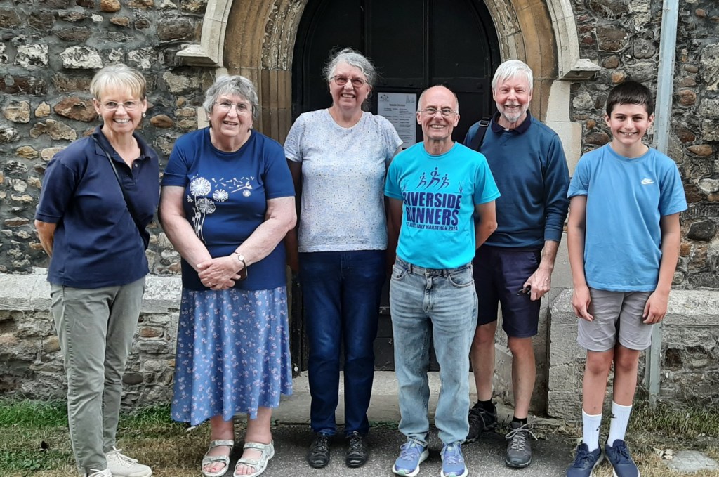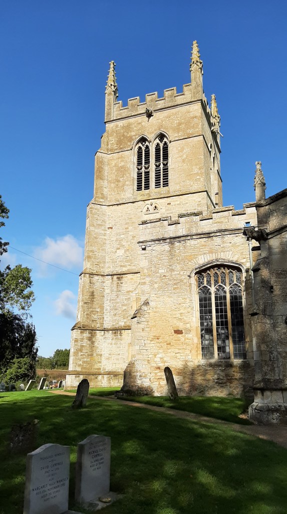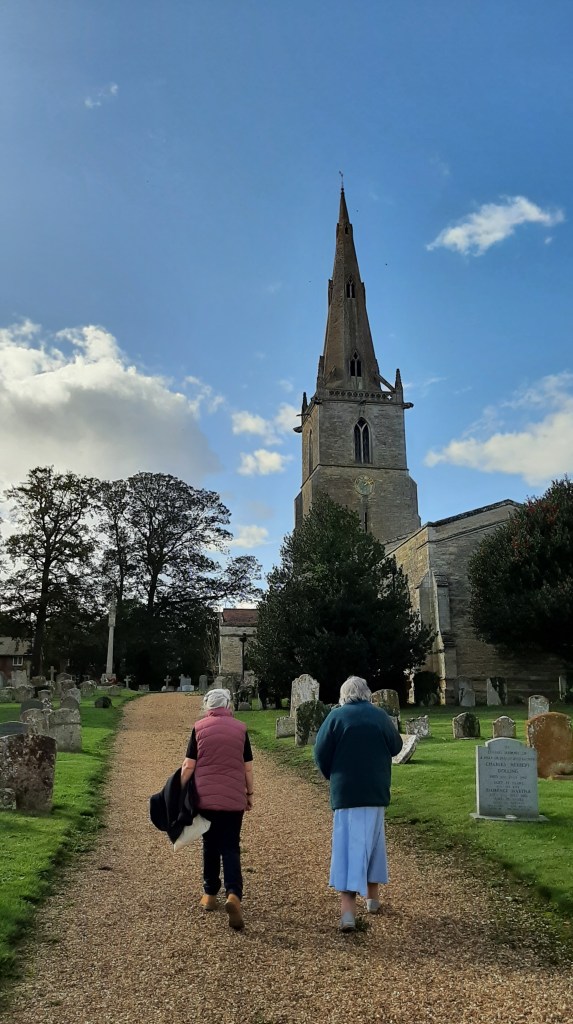 Thursday 10th August 2023 was a lovely warm summer’s evening and eight of us were able to make the visit along the A14 west of Huntingdon. The church spire could be seen which helped direct us to the village and along Church Road to St Leonard’s.