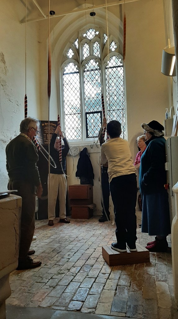 About half an hour in and a group from the Cambridge Ramblers came into church and many of them stood and watched us ringing. I waved from the ringing room.