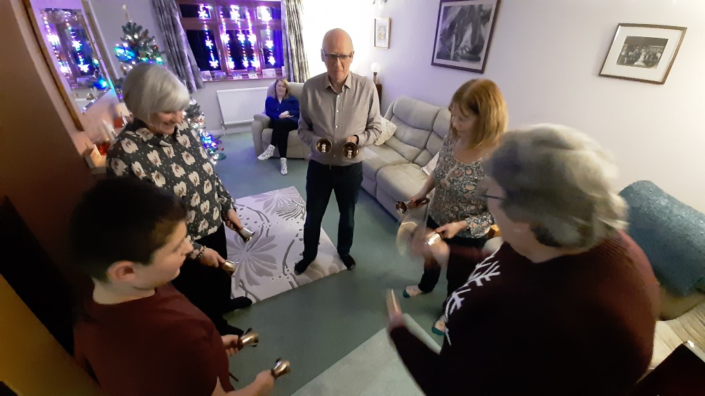 The handbells came out with several having a go at ringing Rounds on ten. David’s quiz entertained us as usual – resulting in a draw between the two teams, the prize clinched by the kitchen team in the tie breaker!