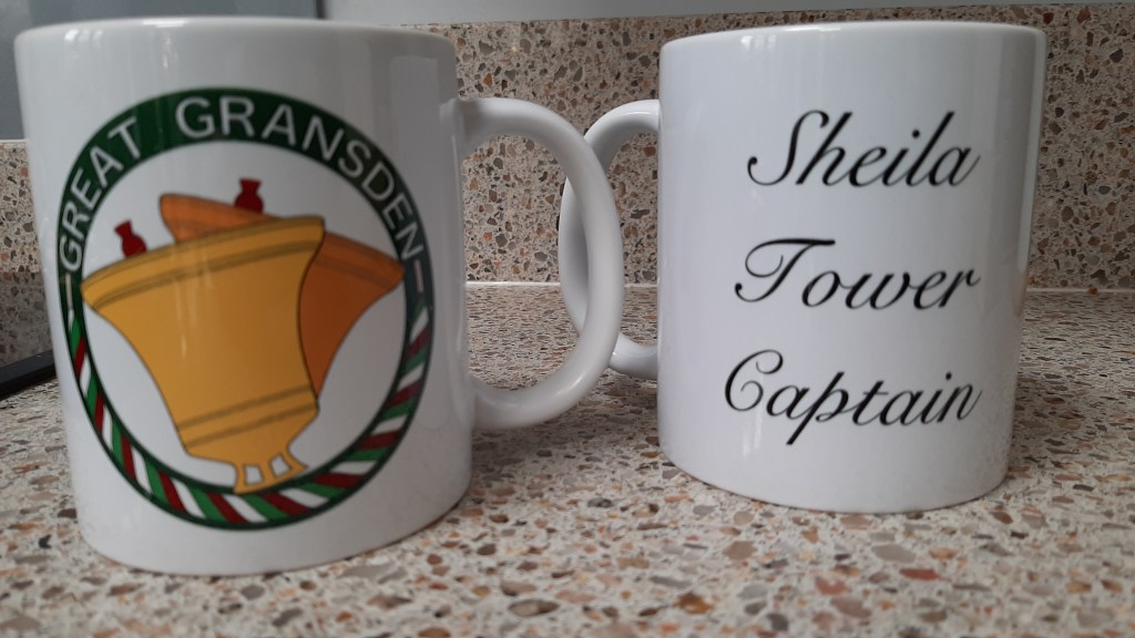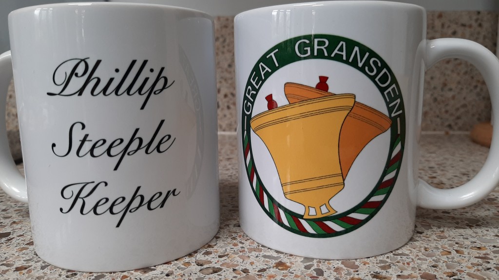 David presented Sheila and Phillip with personalised coffee mugs bearing the Great Gransden ringers’ logo, as a token of appreciation on behalf of the ringers, for their tuition and help during the year.