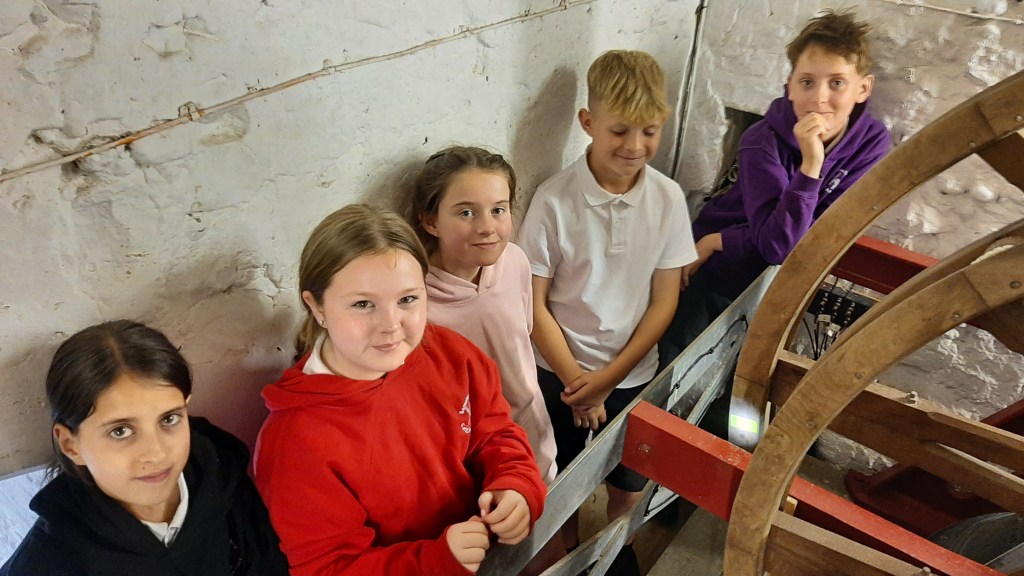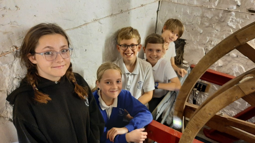 It was a walk into history for the children when we showed them the clock which was installed in 1683 to mark Oley’s golden jubilee year, and then the bells, one of which (No5 dated 1658), he would certainly have heard ring.